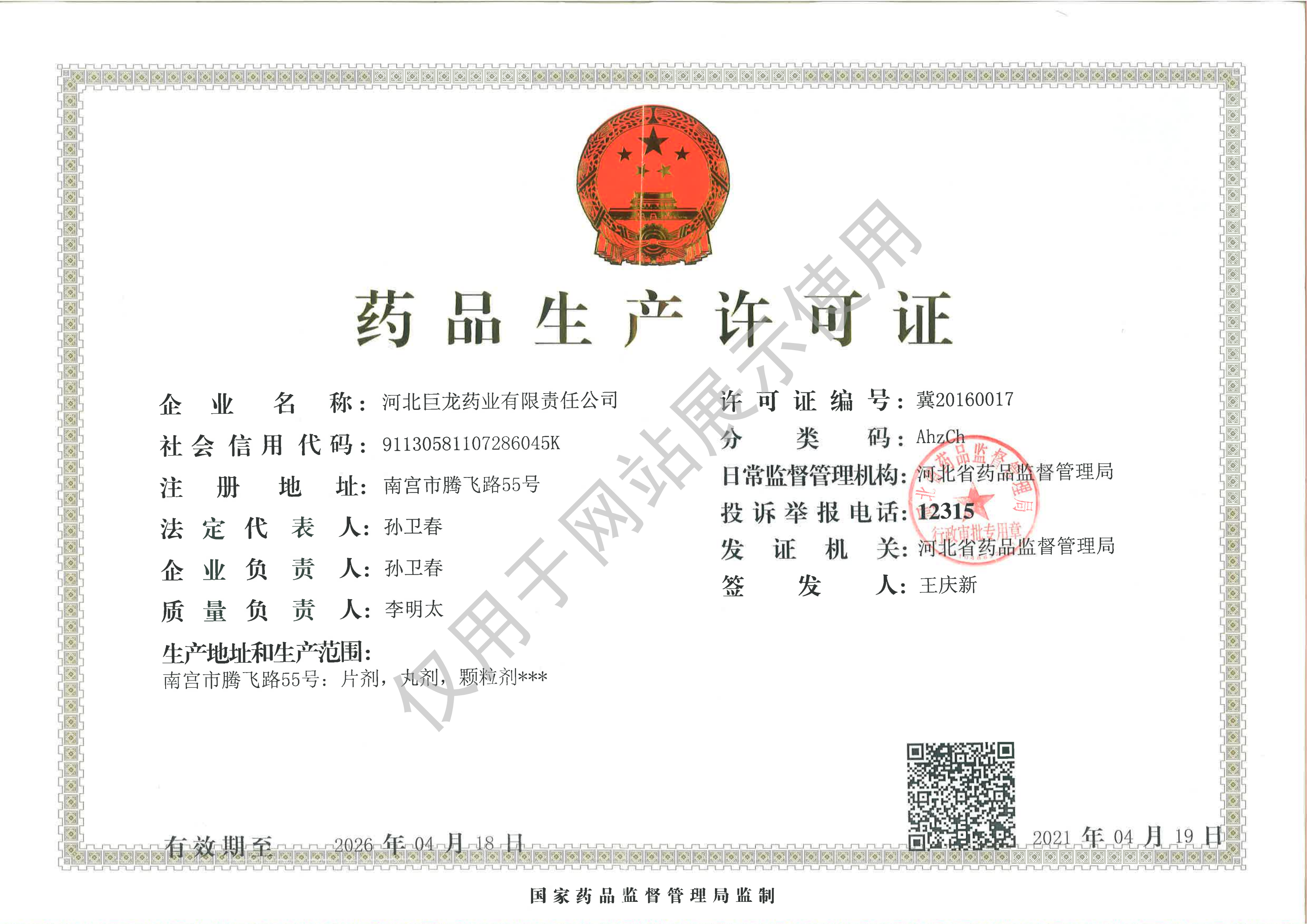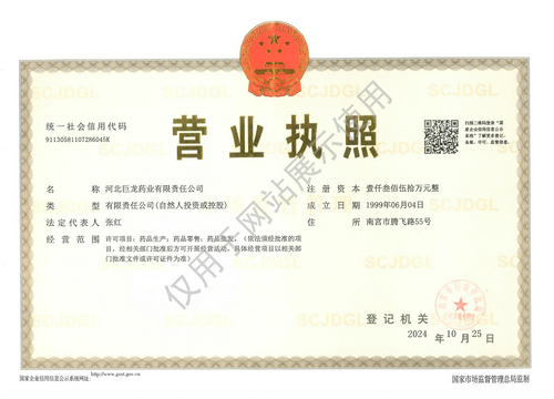 版權(quán)所有:河北巨龍藥業(yè)有限責(zé)任公司 冀ICP備19023826號(hào)-1   1733465040158507.png  冀公網(wǎng)安備13058102000452號(hào) 證書(shū)編號(hào) :(冀)-非經(jīng)營(yíng)性-XXXX-XXXX